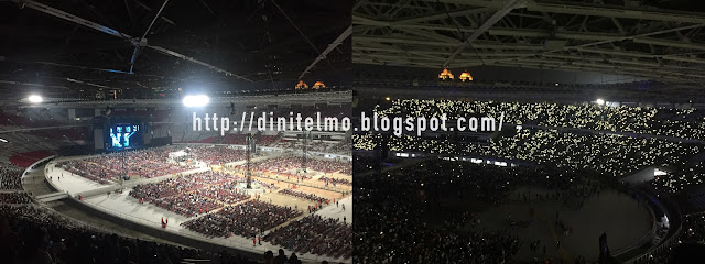 Waktu itu aku dapet tiket gratisnya di kategori 5, yang duduknya agak jauh di tribun, kalo ga salah waktu itu ada 6 kategori sih, kalo kategori 1 yang festival alias di depan panggung tapi ga berdiri.